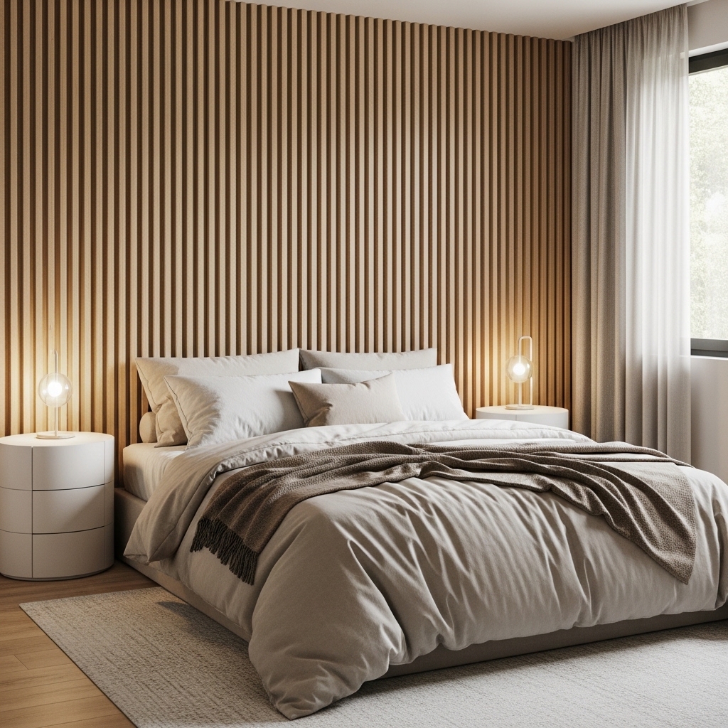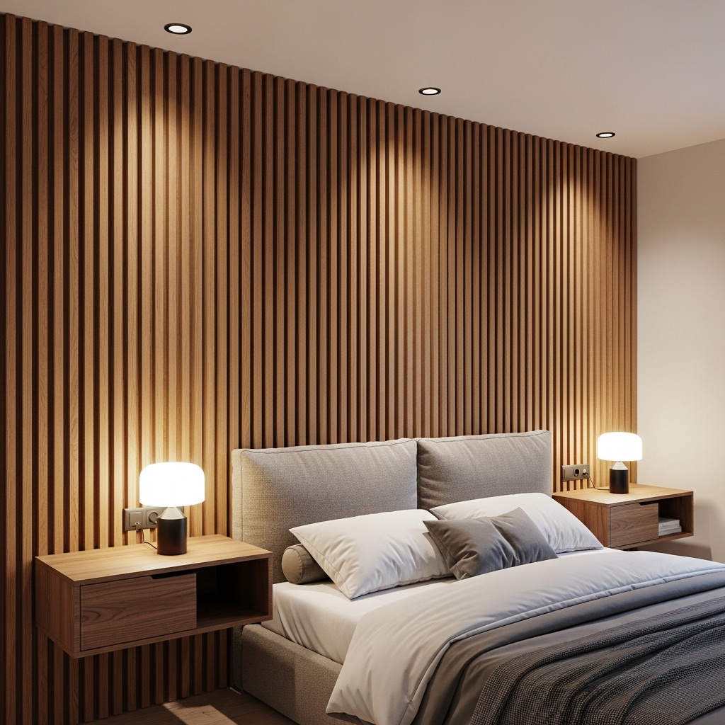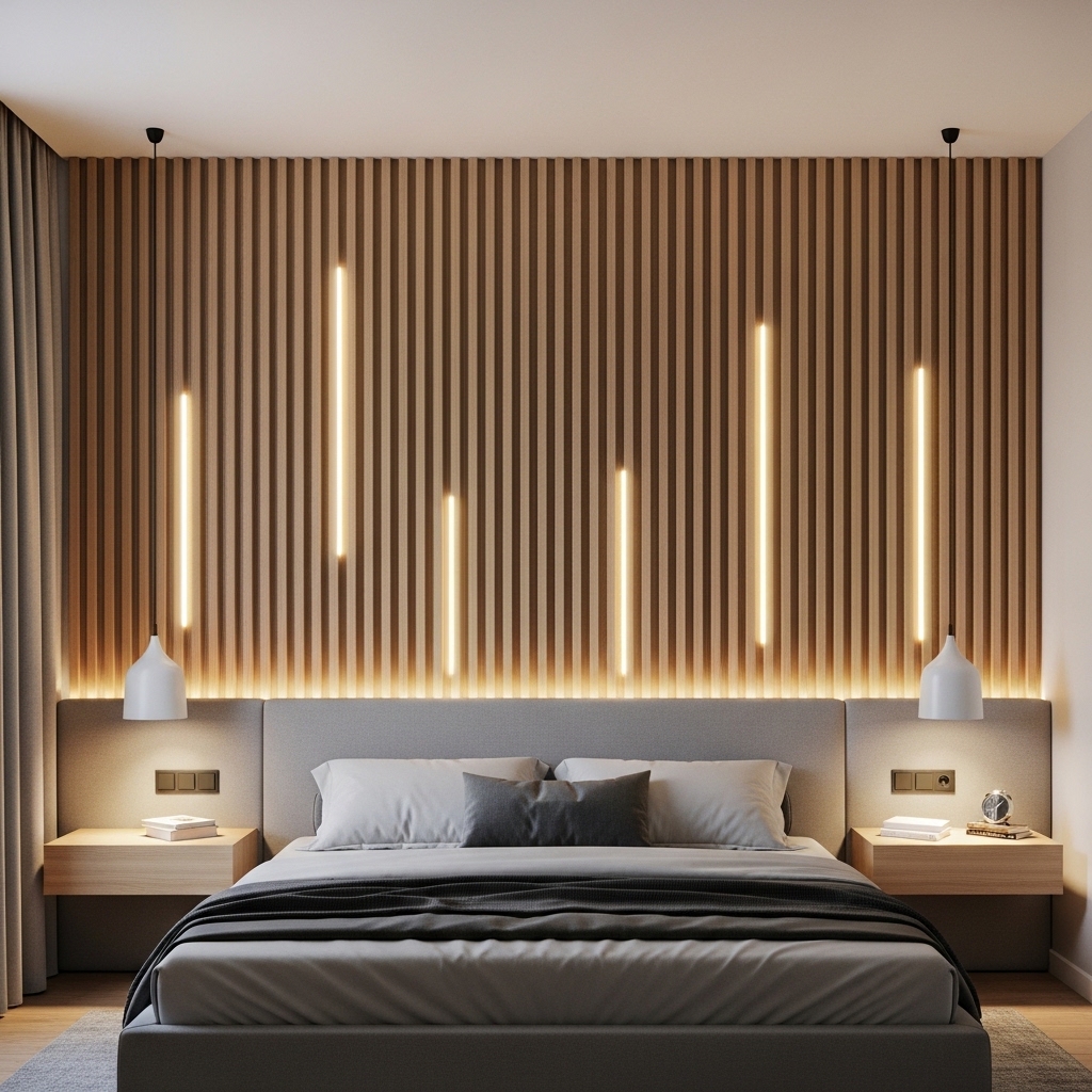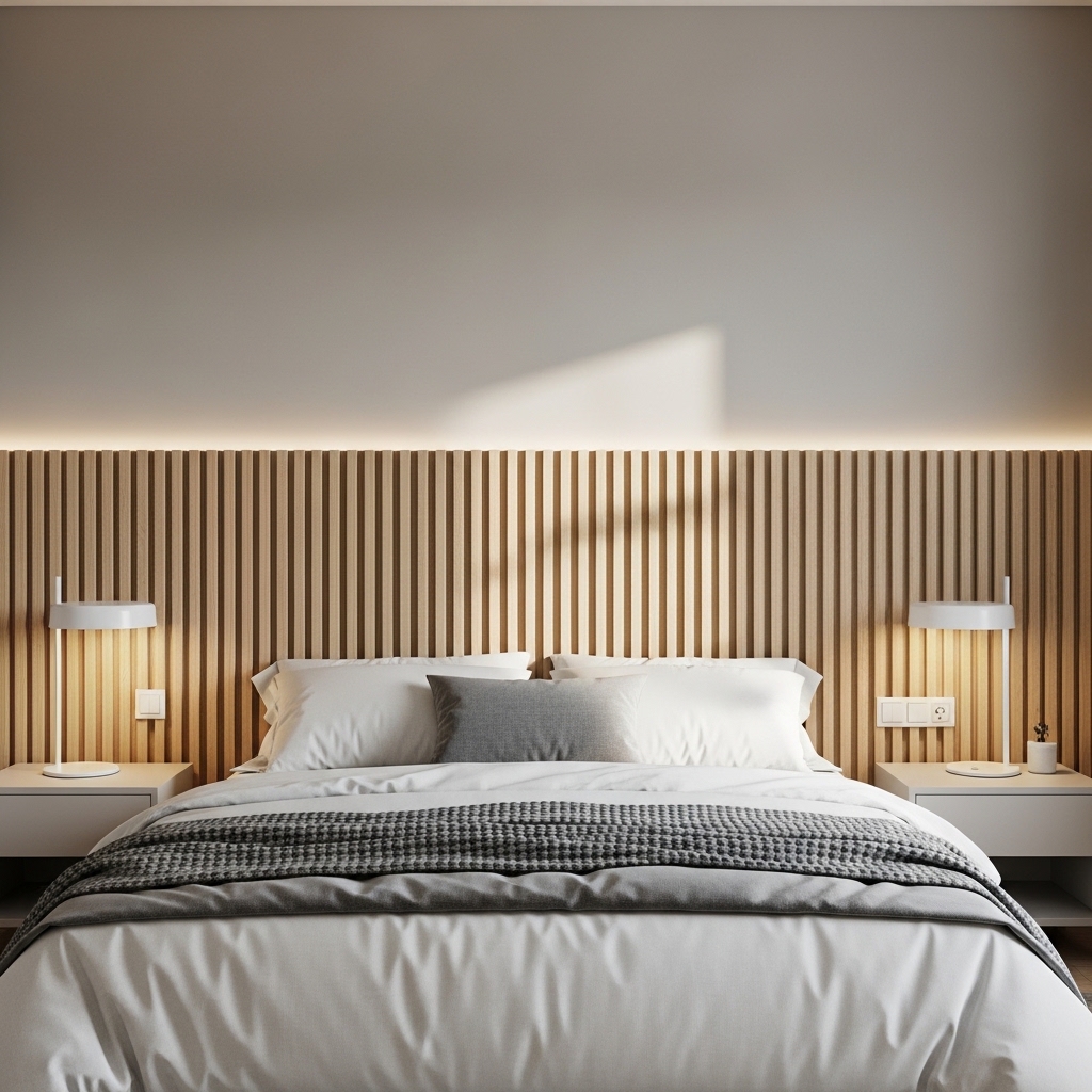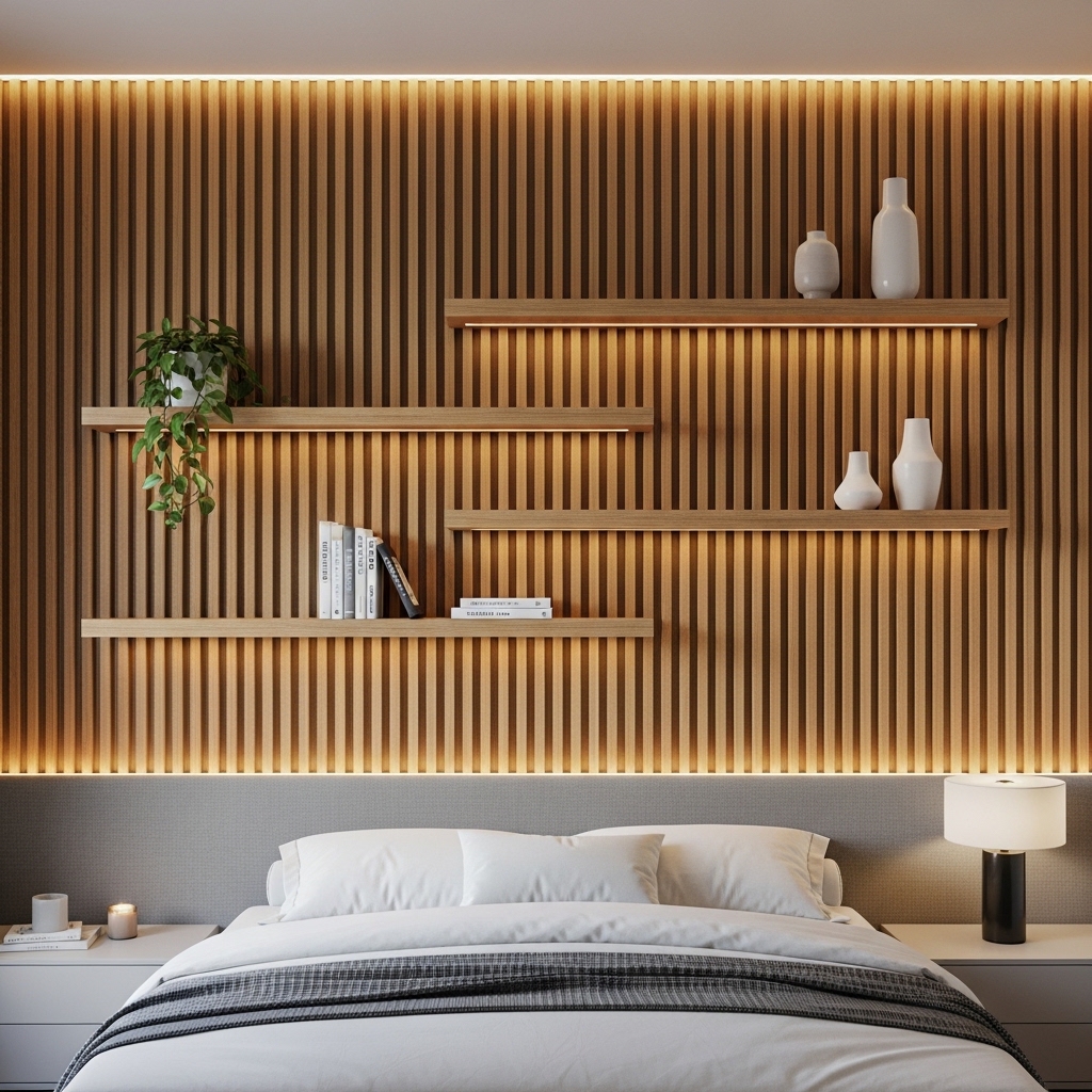 Pro Tip: Use warm LED strip lighting behind the slats to create a soft ambient glow.