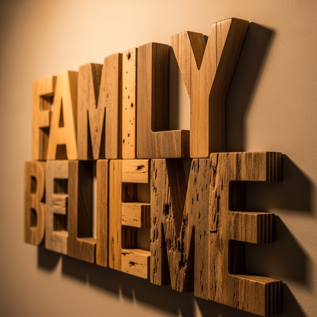 Wood letters are personal. Spell a family name. Spell a single word like “HOME” or “LOVE” or “GATHER.”