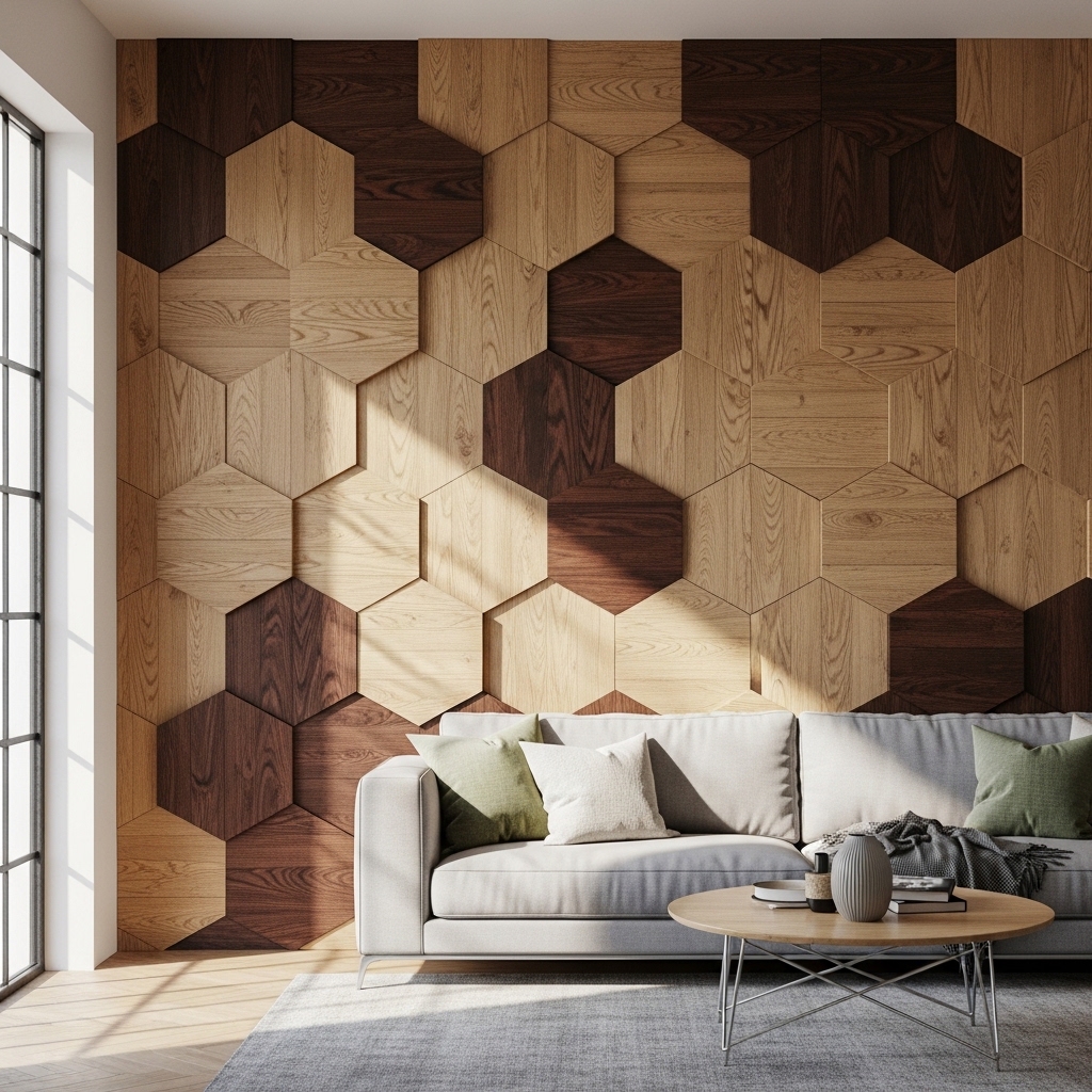6. Geometric Wood Panels for Statement Walls