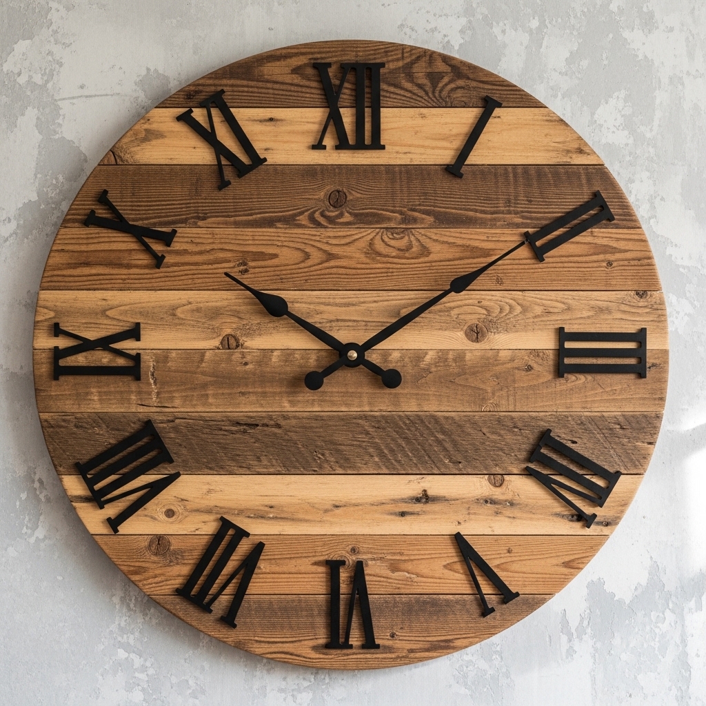 Choose a clock with a simple face and thin hands. The wood grain should be the focal point. Avoid clocks with plastic components.
