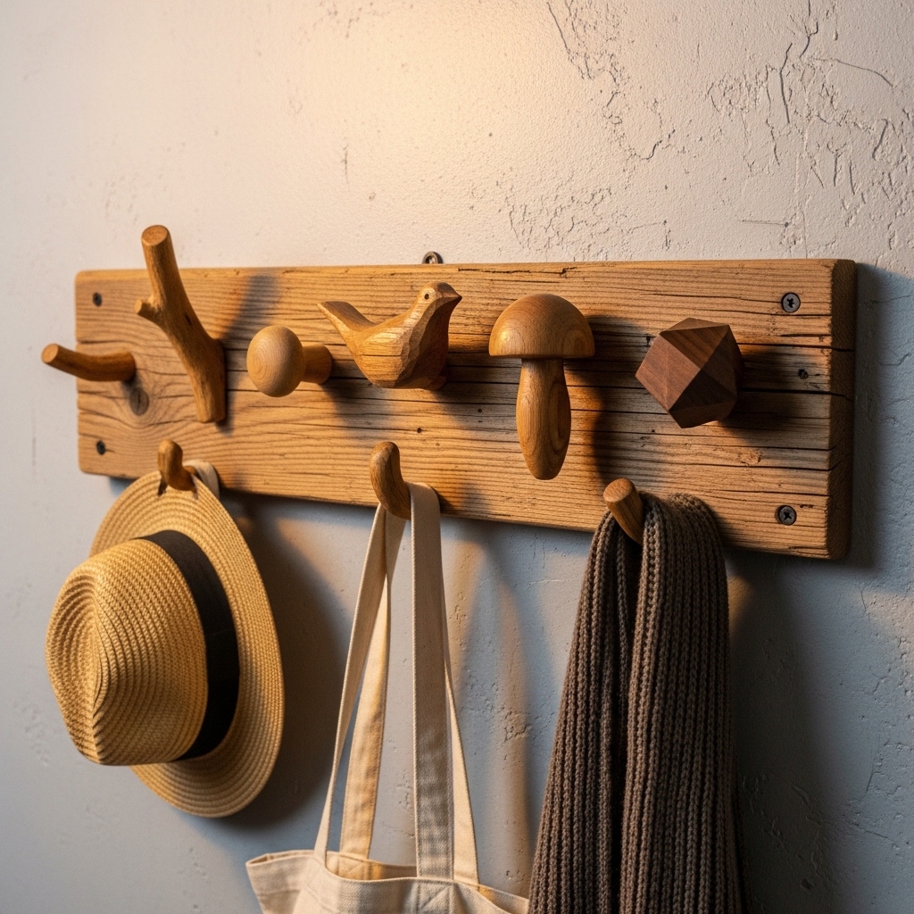 Pro Tip: Use hooks made from the same wood species throughout the room. Consistency creates cohesion.