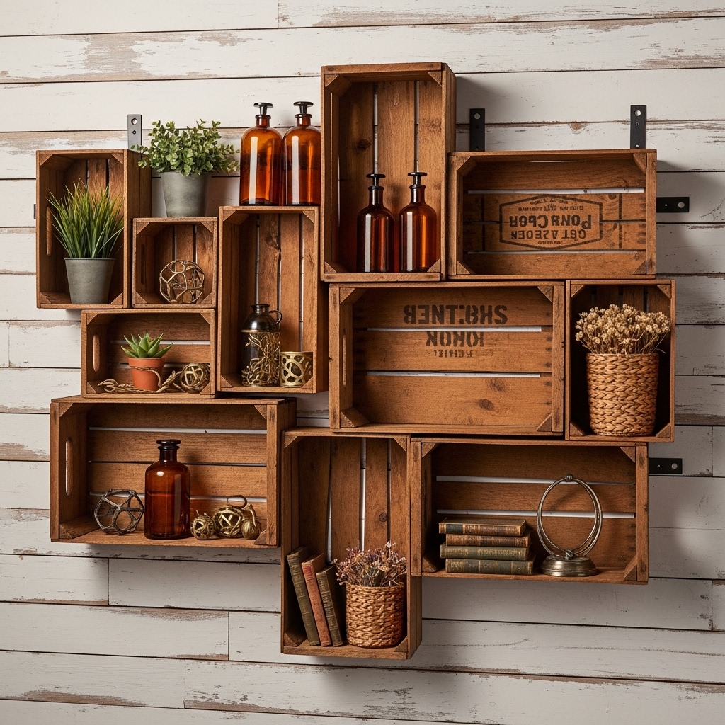 12. Crate Wall for Industrial Farmhouse Style