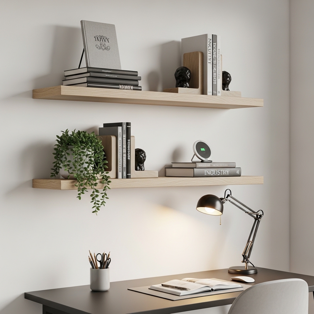 Pro Tip: Install shelves at staggered heights. A zigzag pattern creates visual interest and accommodates different item heights.