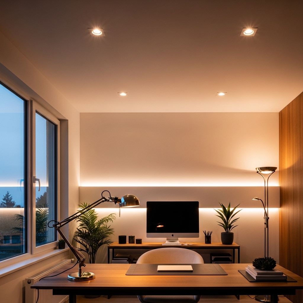 Layered lighting gives you options. Bright light for morning focus. Dim warm light for afternoon calm.